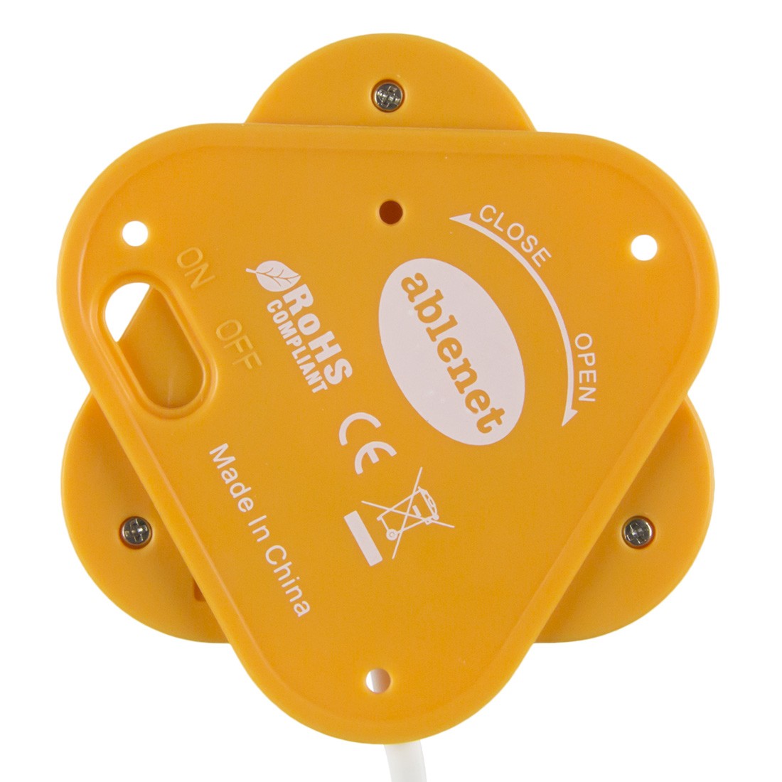 The Candy Corn proximity sensor switch is highly sensitive and does not require a physical touch from the user to activate. Simply wave a hand or move your body within 0.5-in/1-cm of Candy Corn and it activates. to activate. Visual and auditory cues occur when the switch is activated.
